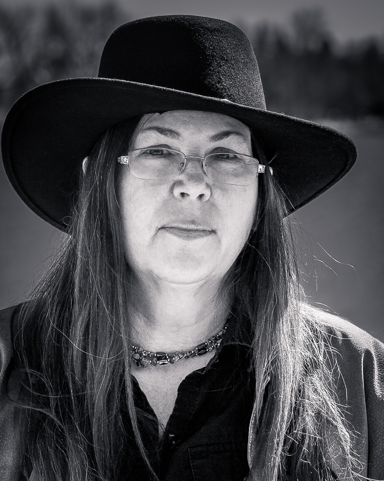 The hands resting on her hips no longer sport that wedding ring, just a large knuckle ring on the middle finger of her left hand as a sort of fuck you to the world. I bet she flips that bird easily, judging by the attitude she throws off. I like it.